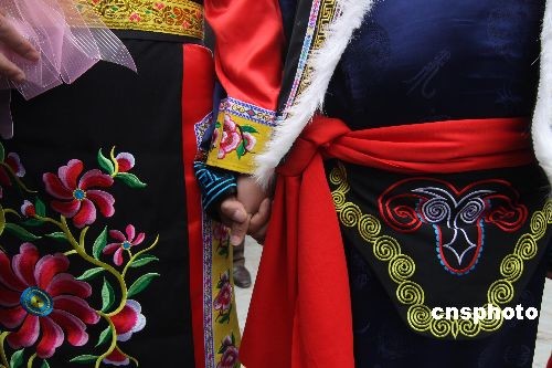 北川羌寨集体婚礼 20对新人震后重组家庭 (5)
