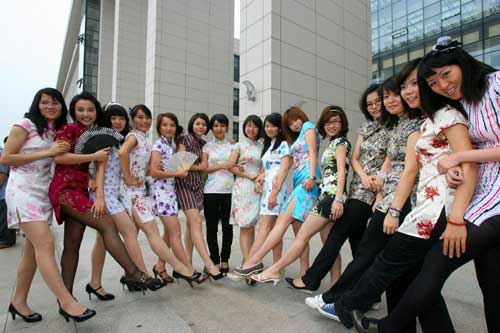 日前,在大学城广州大学校区的图书馆广场前,一群身穿唐装旗袍的毕业生吸引了不少眼球。他们是广州大学新闻与传播学院09届广告班的学生。毕业留影日,他们除了穿学士服拍照外,还特意穿上“中国风”服装,要为毕业多留一份回忆。