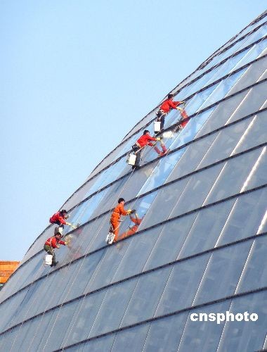 图:国家大剧院“洗脸”迎 “五一”(2)