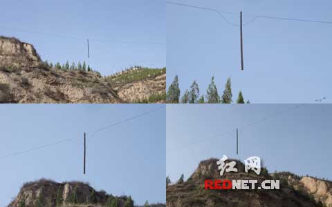 “真牛,电线杆都飞身变神仙了!”近日,网友“湘水悠悠”在红网论坛发了一组题为《实拍山西最牛的电线杆》的照片:由远及近地呈现出一根高高悬空的电线杆,因没有其余依托仅靠两根电线拉扯着,垂直悬空的电线杆看上去甚是吓人。该组照片在搜狐新闻社区等网上也广泛流传,众网友震惊无比,有人调侃,有人分析原因,更有人质疑其真实性。