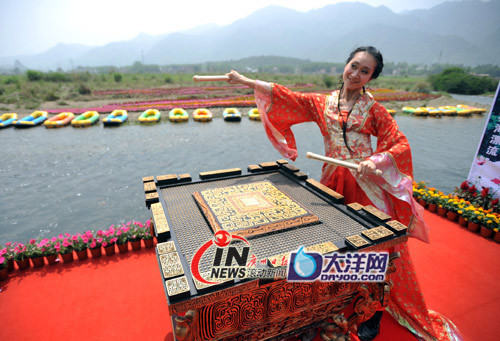 昨天(27日)上午,悠扬的击缶韵曲弥漫了整个从化响水峡景区,3位穿着汉服的美女一边扭动着优美的舞姿,一边轻轻击缶而歌。让围观者惊叹不已的是,这3位汉服美女所击之物正是奥运会开幕式时所使用的“缶”!