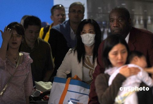 当地时间四月二十七日,旅客抵达洛杉矶国际机场。受到墨西哥猪流感疫情暴发和美国发现猪流感病例的影响,洛杉矶机场当天出现了一些戴口罩的旅客,其中绝大多数是亚裔。截至目前,美国已发现四十余例猪流感患者,临近墨西哥的洛杉矶地区至今未发现病例。中新社发 张炜 摄
