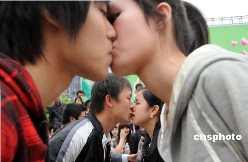 图:江苏扬州举办情侣接吻大赛
