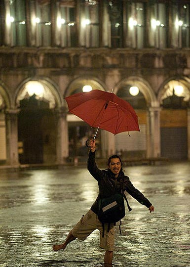 图:威尼斯洪水肆虐 年轻人大玩水上滑板