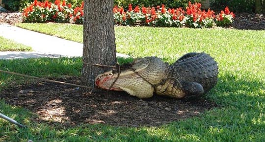 图:11英尺大鳄鱼爬到住户门外困住主人(6)