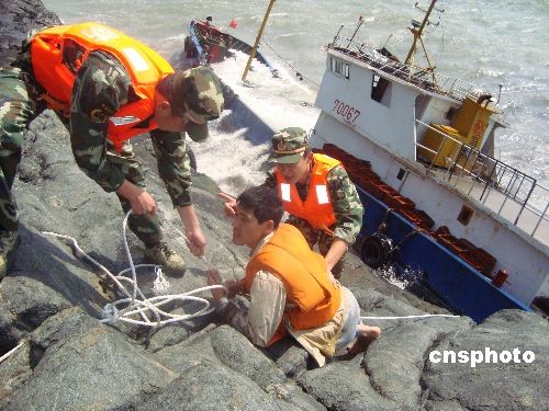 图:福建平潭边防官兵紧急救助触礁渔船(3)