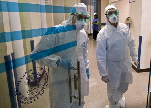 墨西哥城的一家医院内,医生严阵以待。墨西哥卫生部长科尔多瓦当地时间28日宣布,墨西哥确认及疑似猪流感死亡数已经达159人。