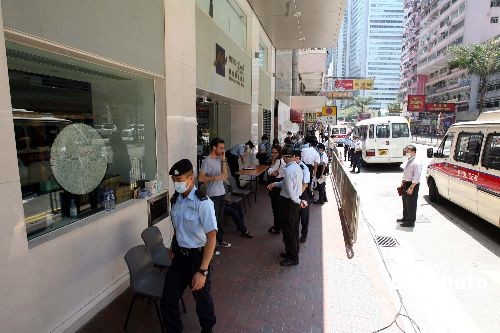 警方及卫生署人员到湾仔维景酒店,继续进行封锁行动,该酒店住客须接受隔离。中新社发 洪少葵 摄