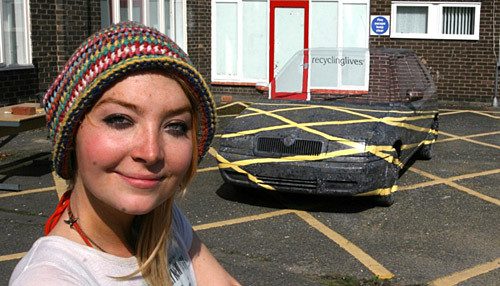 据英国媒体5月1日报道,英国兰开夏郡一所大学艺术系的学生将自己喜爱的汽车“隐身”。这位学生是利用视觉错觉完成自己的作品的。
