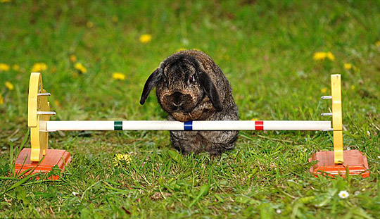 宠物兔学会“障碍跳高”。