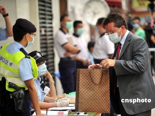 五月四日,香港湾仔维景酒店住客及职员继续被隔离进入第四天。图为陆续有市民将东西带给被隔离人士。中新社发 谭达明 摄