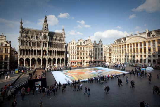 5月7日,一幅长30米、宽23米的巨幅“丁丁奔向月球”漫画亮相比利时布鲁塞尔市中心著名的大广场。这幅漫画出自比利时著名漫画家埃尔热创作的风靡全球的系列漫画丛书《丁丁历险记》中的一个故事。这个活动是为了纪念丁丁诞生80周年。