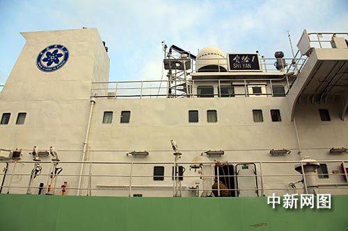 图为船体上印有醒目的中科院院徽。中新社记者 孙自法 摄