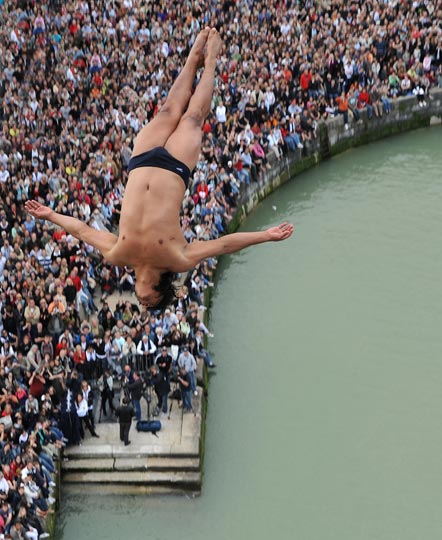 图:法国"悬崖"跳水赛 选手比技巧拼勇气(3)