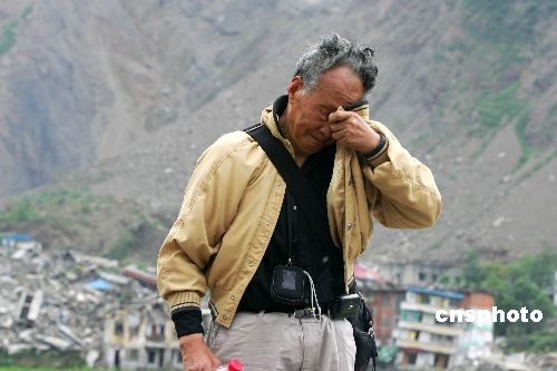 [汶川地震一周年]北川遗址局部解禁 民众祭奠遇难亲人