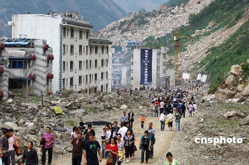 [汶川地震一周年]北川遗址局部解禁 民众祭奠遇难亲人