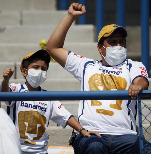 组图:墨西哥球迷戴口罩场边为球队助威(2)