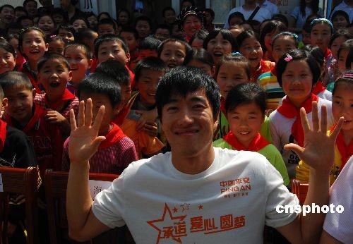 [汶川地震一周年]刘翔在北川与灾区孩子同上体育课