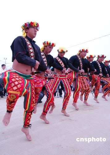 5月12日,在汶川大地震周年日,由高金素梅率领的台湾原住民文化团队来到四川德阳市罗江县金山镇板房区,以岛内少数民族特有的“除丧”方式为汶川大地震灾区民众祈福。中新社发 曾嘉 摄