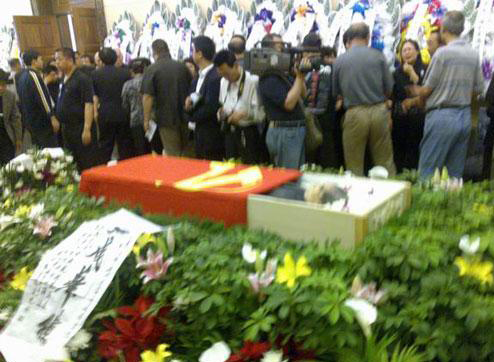 清晨,八宝山殡仪馆东厅门前挂上了“沉痛悼念李文华同志”条幅,灵堂内还在忙碌布置时,姜昆、冯巩、陈寒柏、李增瑞、贾伦、王学为、刘全和、刘全利等曲艺界人士和歌唱家魏金栋等就已经提前赶到现场。早上八点,赶来参加追悼会的群众排起了长队,近千人送别李文华。门前,保安严阵以待组成人墙确保秩序井然。据工作人员透露,早上6点钟,就已经有群众等候在门前,有的人还特别手工制作了悼念海报,其中部分群众是专程从外地赶来的。八点半左右,广电总局副局长赵实赶来送别李文华,随后曲艺界人士常宝华、孟凡贵、唐杰忠、笑林、郑健、王玥波、李金斗、王文林、徐德亮、郝爱民、刘伟、宋德全、王珏、李建华、戴志诚、赵宝乐、赵炎等人也都陆续赶来。