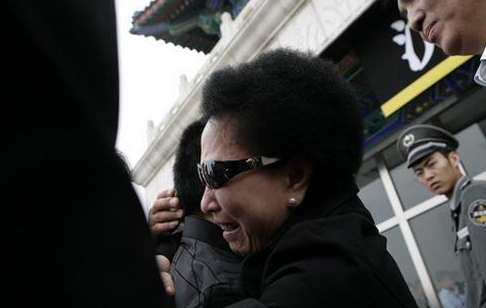李文华追悼会八宝山举行 亲友互相安慰。