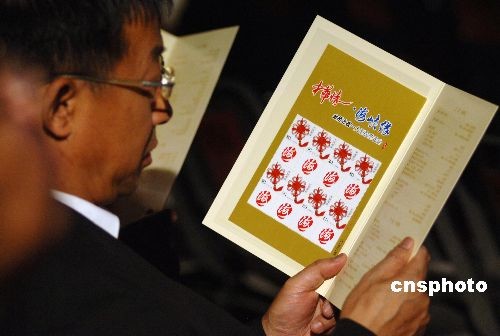 5月16日,首届海峡论坛大型文艺晚会“中华情 海峡缘”在厦门会展中心举行,六千五百多名嘉宾参加,其中台湾嘉宾四千多名。图为节目单上别出心裁的增加了纪念邮票,令台湾嘉宾爱不释手。中新社发 傅丹丹 摄