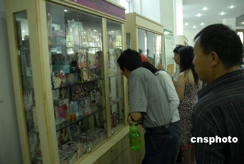 5月16日, 2009中国昆明性文化博览会在昆明开幕,许多成人用品厂家和商家抓住这一良机,推销产品。图为昆明市民在性博会上坦然选购成人用品。中新社发 杨洋 摄
