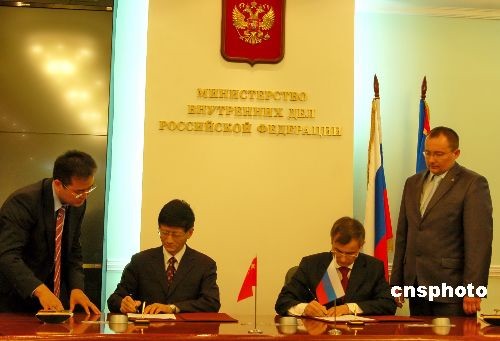 5月19日,中国国务委员、公安部部长孟建柱与俄内务部长努尔加利耶夫在莫斯科举行会谈,并共同签署《中国公安部和俄罗斯内务部2009-2010年合作议定书》。孟建柱18日在叶卡捷琳堡出席了上合组织成员国首次公安内务部长会议,并签署成员国政府间打击跨国犯罪、反洗钱等多项合作文件。中新社发 田冰 摄