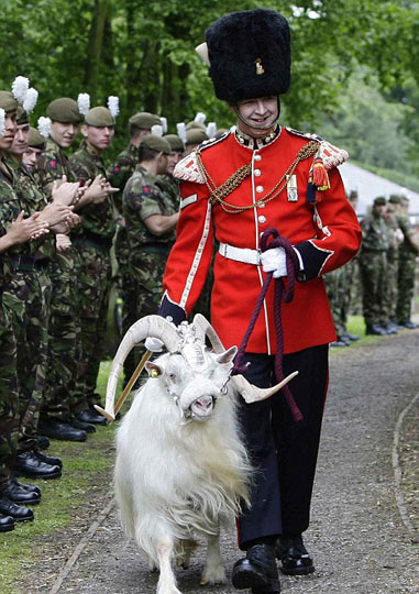 据英国媒体报道,5月20日,在英国切斯特戴尔军营,皇家威尔士第一团的吉祥物山羊威廉·温莎参加为它举办的“退役”仪式。温莎将被送往惠普斯奈德度过余生。
