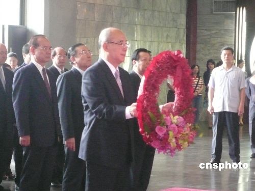 中国国民党党主席吴伯雄率党内要员向孙逸仙纪念馆内的孙中山先生铜像献花。中新社发 邓敏 摄