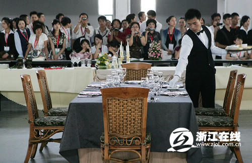 图:俊男美女现场PK饭店服务技能(2)