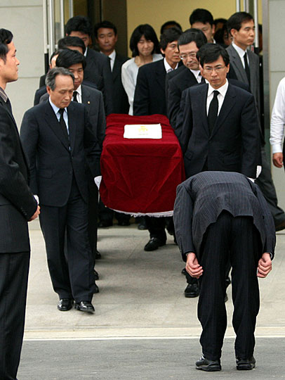 5月23日,今晨跳崖身亡的韩国前总统卢武铉的遗体运往他的家乡峰下村。