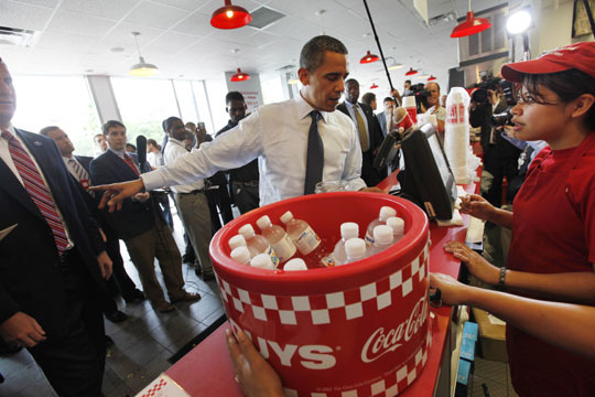 奥巴马外出为白宫员工买汉堡 排队时吃零食(图)