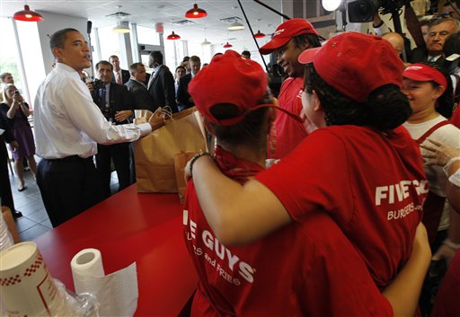 组图:奥巴马外出为白宫员工排队买汉堡(5)