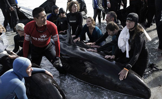 组图:数十头巨头鲸在南非海滩搁浅(2)