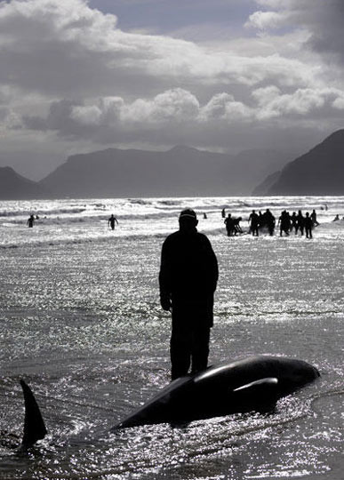 组图:数十头巨头鲸在南非海滩搁浅(3)