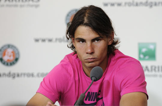 赛后新闻发布会上的纳达尔表情失落。