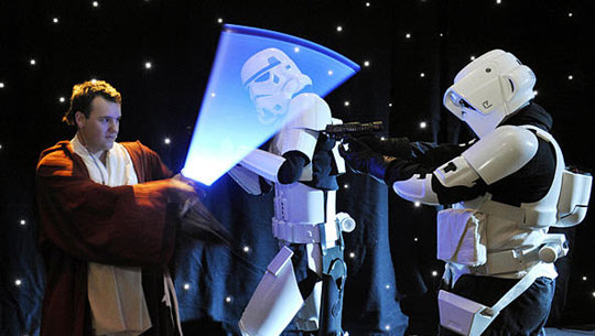 6月2日,一个名为“星球大战:科技与梦想的激情碰撞”的展览在澳大利亚墨尔本举行。图为影迷扮成“星球大战”中的角色在展览上一试身手。