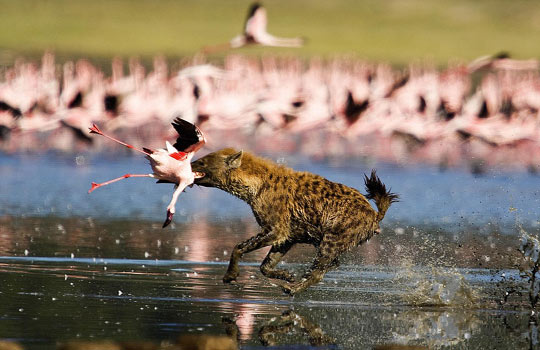 图:英摄影师拍下土狼偷袭火烈鸟一幕(2)