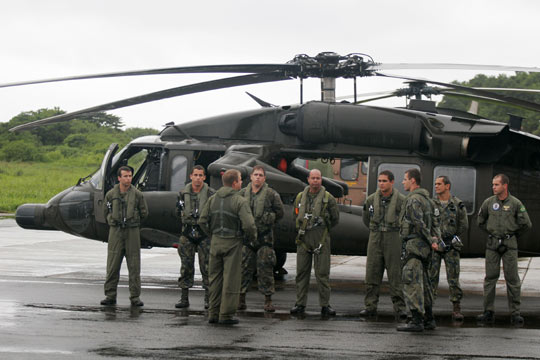 6月9日,在巴西的费尔南多-迪诺罗尼亚岛,多名空军士兵正在准备搭乘直升机,继续搜寻法航失事客机遇难者遗体。