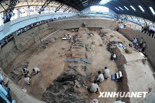 13日,考古人员将对被称为“世界第八奇迹”的秦兵马俑一号坑进行发掘,这是其沉寂20多年后迎来的第三次考古发掘。秦兵马俑一号坑是一个东西向的长方形坑,长230米、宽62米,坑东西两端有长廊,南北两侧各有一边廊,中间为九条东西向过洞,过洞之间以夯土墙间隔,估计一号坑内埋有约6000个真人真马大小的陶俑。图为工作人员在一号坑进行发掘工作。焦卫平摄