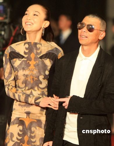 6月13日晚,第12届上海国际电影节开幕盛典在上海大剧院举行,本次盛典吸引了众多中外明星前来参加。图为著名导演冯小刚(右)携手范文芳(左)出席上海国际电影节开幕式。中新社发 汤彦俊 摄