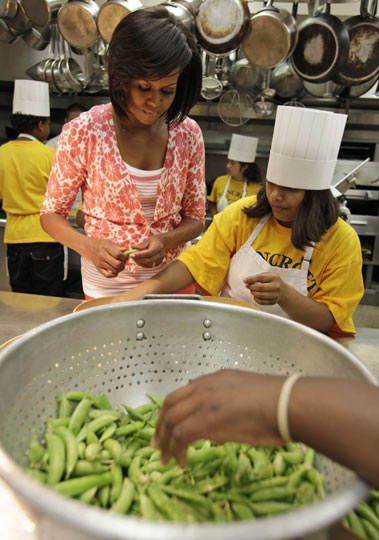 图:美国第一夫人与小学生白宫菜园里收菜(3)