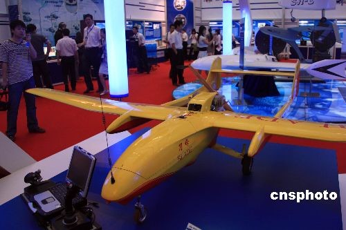 2009年6月16日中国航天科工集团在北京推出“2009年应急救援装备与安保科技系统展览”,该集团研制的无人机、去年向四川汶川特大地震灾区提供的一系列应急救援装备以及为北京奥运会、残奥会研制的安保科技系统等,共140多项高科技产品,在展览上逐一精彩亮相。 中新社发 孙自法 摄