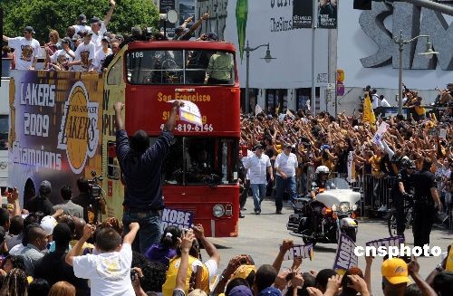 组图:洛杉矶大游行庆祝湖人队夺NBA冠军 (5)