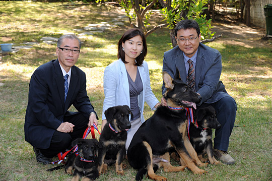 图为韩国科学与克隆犬合影。