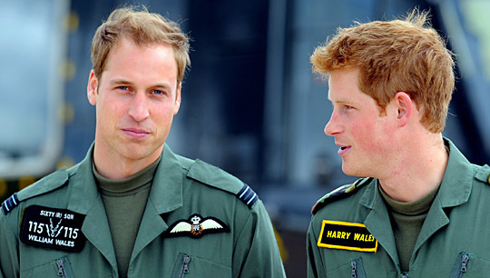 威廉王子(左)和哈里王子合影。