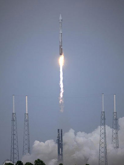 当地时间6月18日,美国航天局在佛罗里达州卡纳维拉尔角空军基地发射一枚“宇宙神-5”运载火箭,将“月球勘查轨道号”与“月球陨坑观测与传感卫星”两个月球探测器送上太空。这标志着美国“2020年重返月球”计划正式启动。图为美国宇航局发布的“宇宙神-5”运载火箭将“月球勘查轨道号”和“月球陨坑观测与传感卫星”两个月球探测器发射升空的照片。