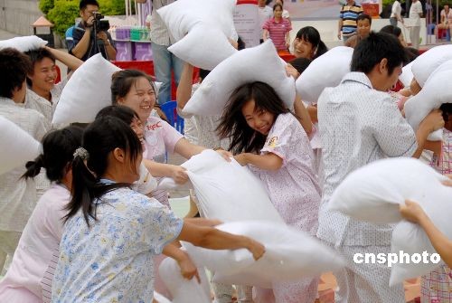 广西南宁上演睡衣枕头“疯狂派对”(2)