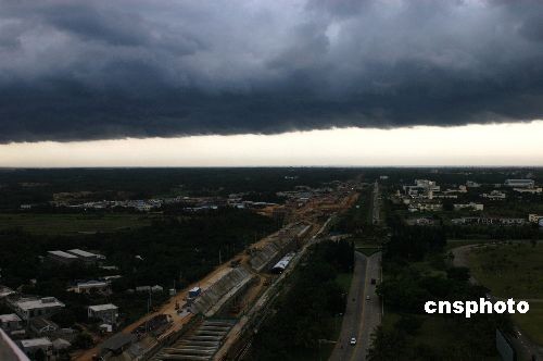 图:海口暴雨来袭前出现“阴阳天”